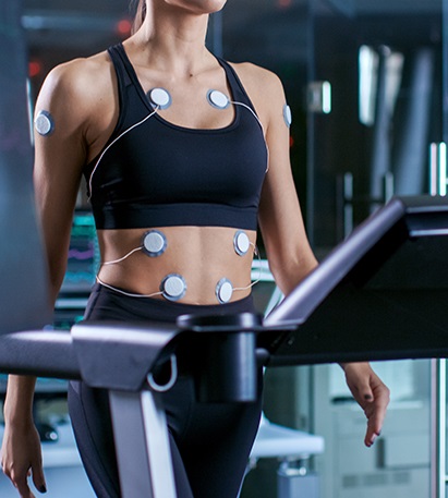 • You walk/run on a treadmill with gradually increasing speed and incline.
